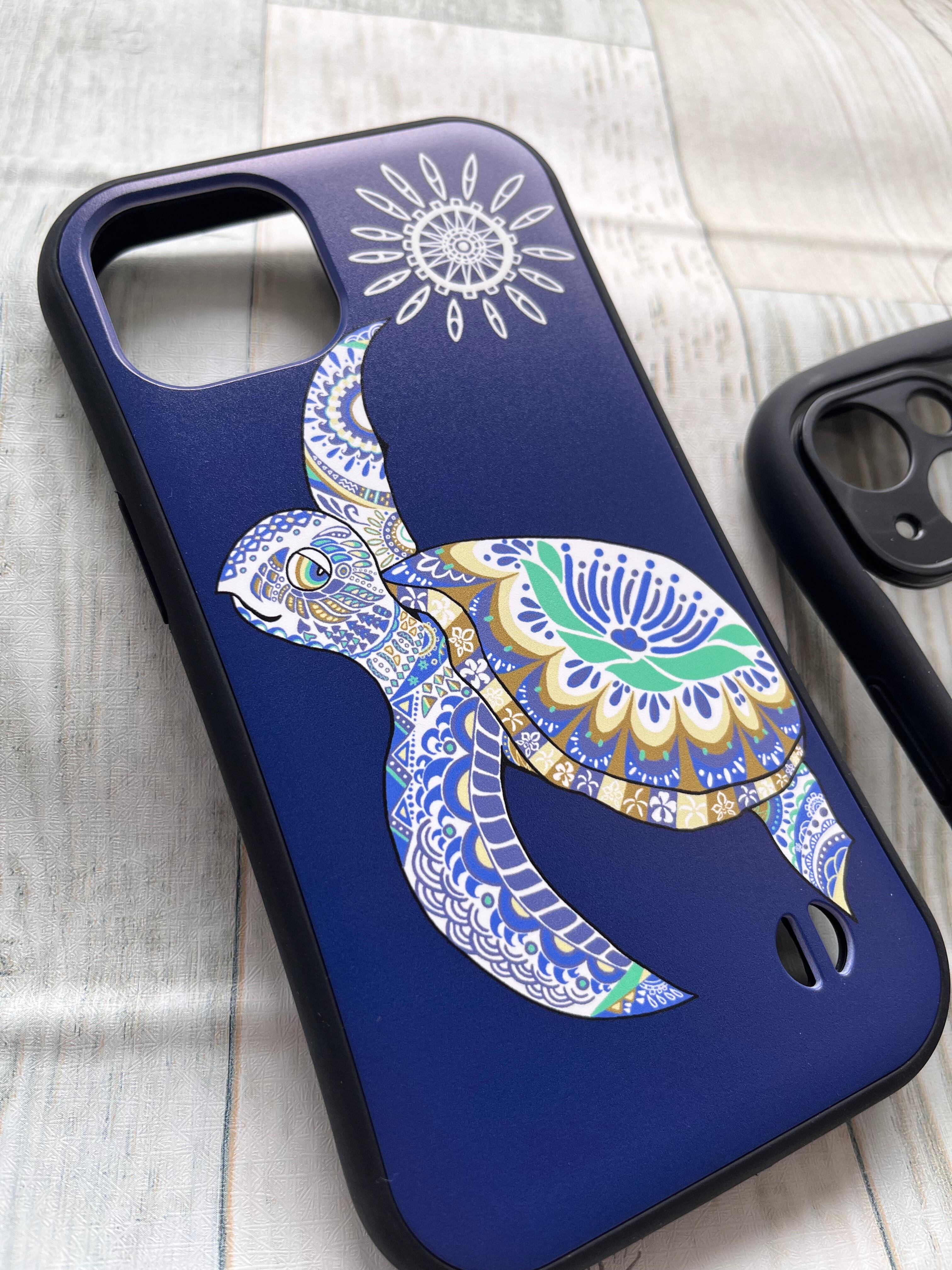 ウミガメのデザインをプリントした衝撃耐性グリップのケースです。