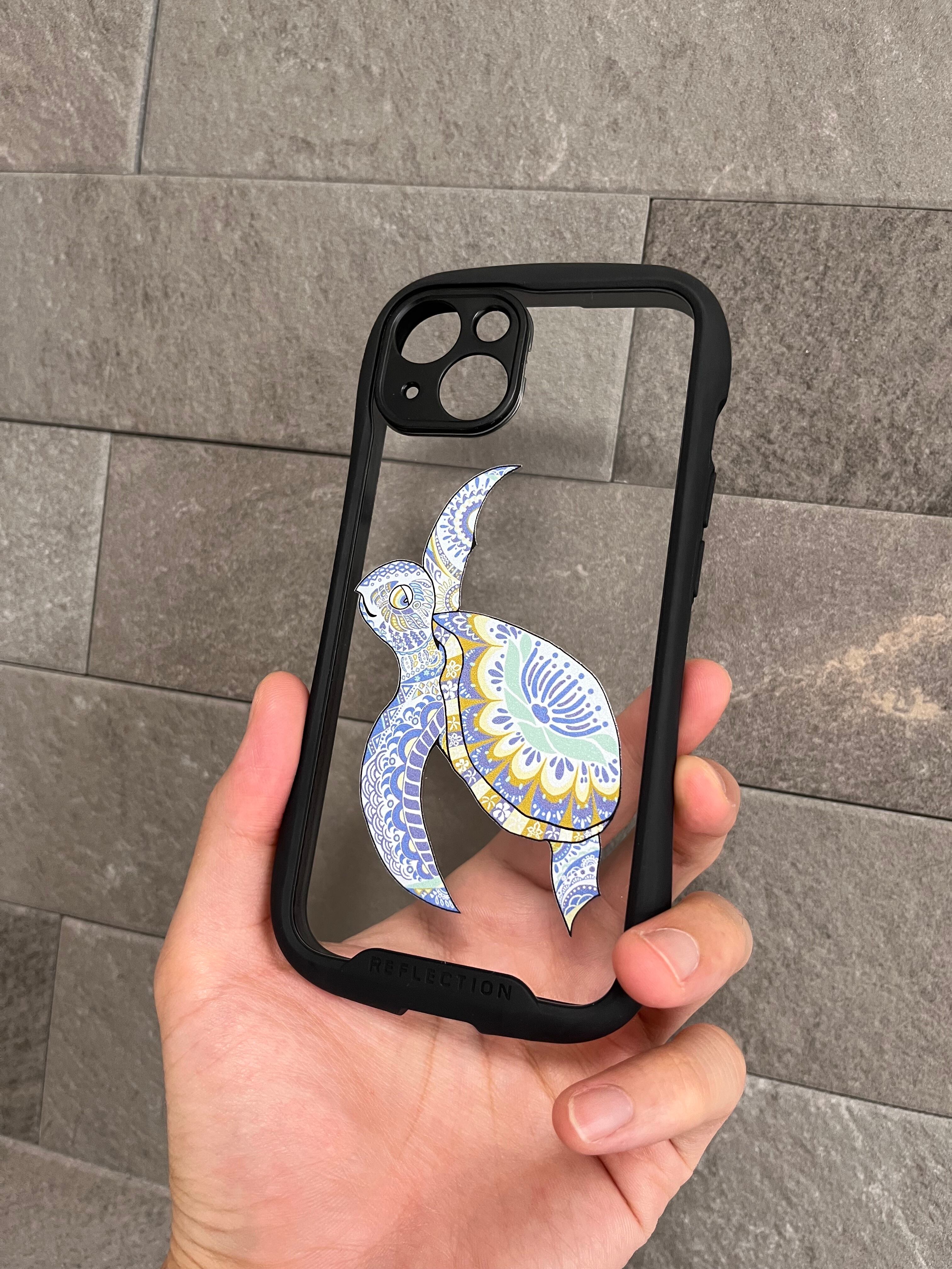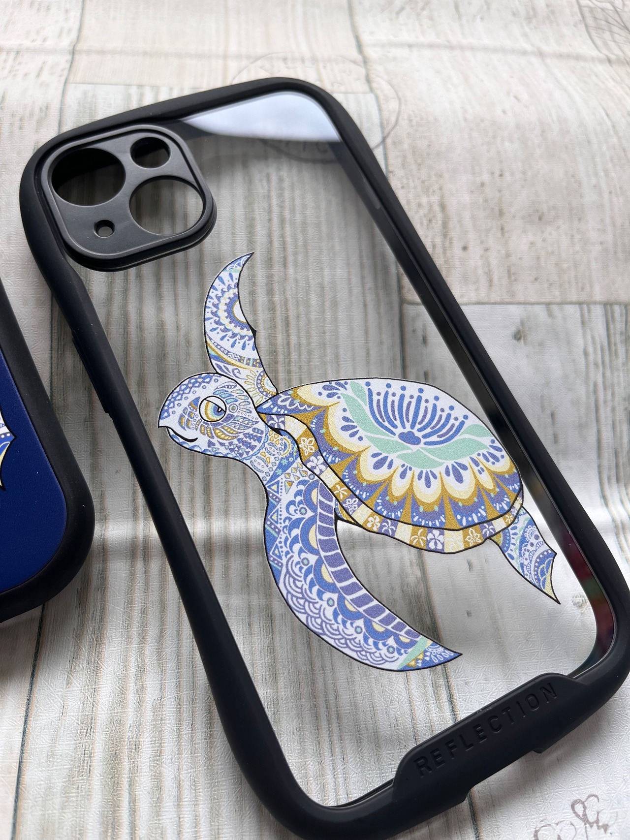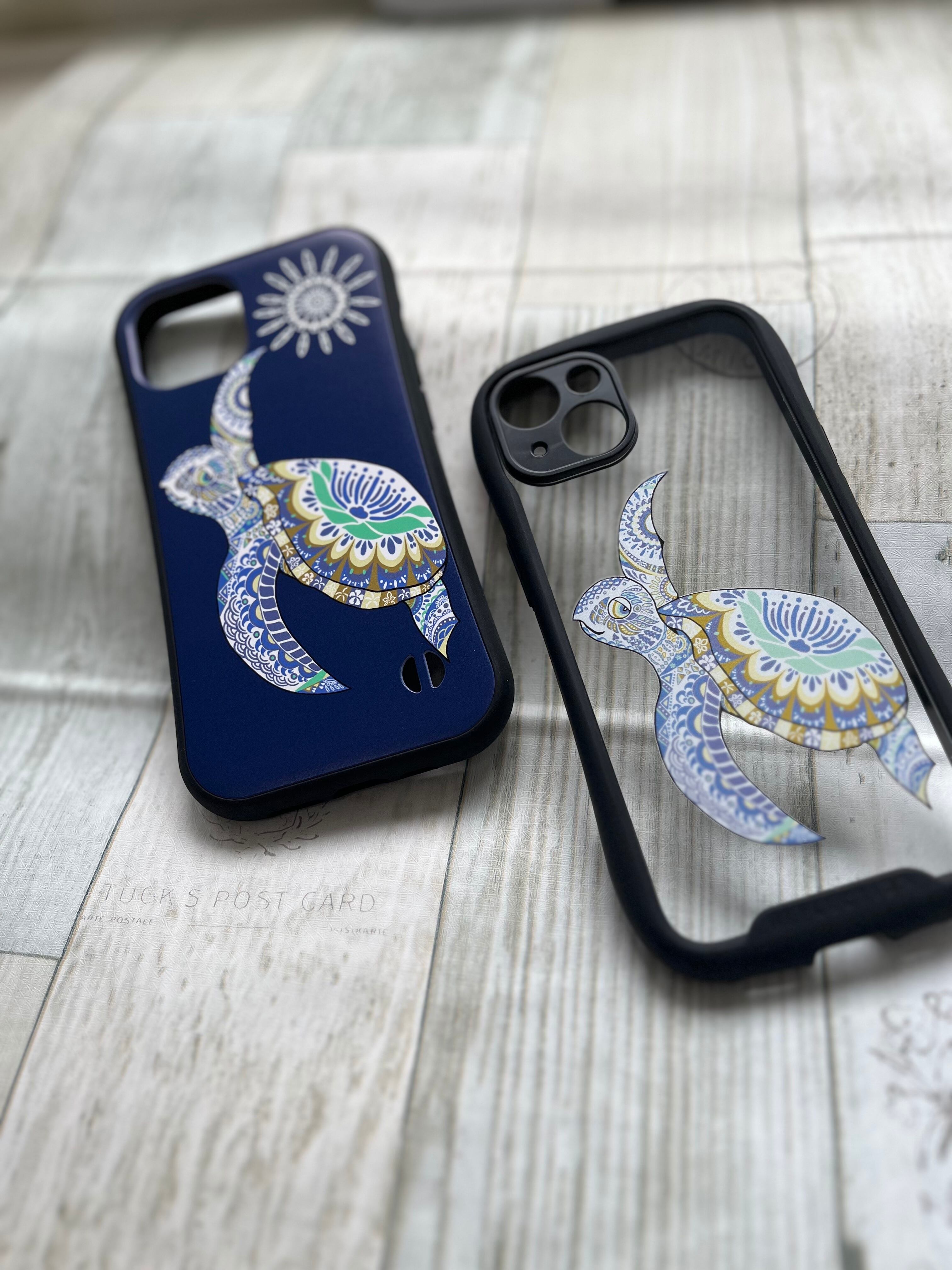 ウミガメのデザインをプリントした衝撃耐性グリップのケースです。